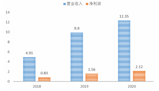 近年来,天铁股份业绩快速增长。财报数据显示,2018年至2020年,天铁股份分别实现营业收入4.91亿元、9.90亿元、12.35亿元,分别实现净利润8279万、1.56亿元、2.12亿元。