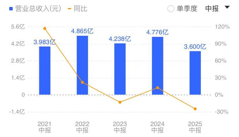 2025年上半年,移为通信营业收入3.60亿元,同比下降24.62%;归属于上市公司股东的净利润3102万元,同比减少68.57%。两个指标均延续了一季报的下跌态势,并且创下近五年来同期最低。