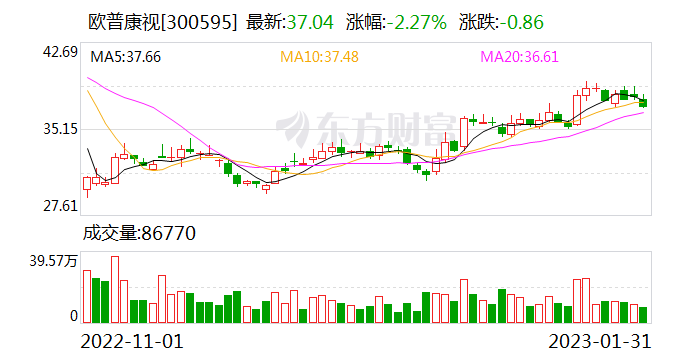 2023年1月20日,深股通持有欧普康视的股份数量为2221.23万股,占流通股本的2.48%,较上期(2023年1月10日)的2457.13万股下降9.60%。