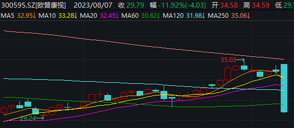 值得注意的是,欧普康视股价走势并不乐观。8月7日,欧普康视股价大跌11.92%,报29.79元每股。
