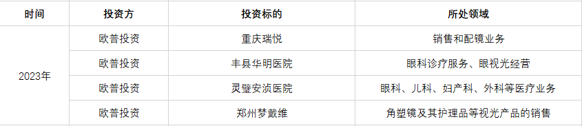 除了参投医疗科技企业外,欧普康视也同样在通过对外投资的方式扩充旗下眼科诊疗机构的规模。