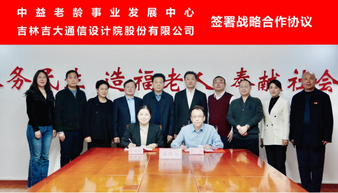 2023年1月8日,吉林吉大通信设计院股份有限公司(以下简称:吉大通信)与中益老龄事业发展中心在北京举行战略合作签约仪式。