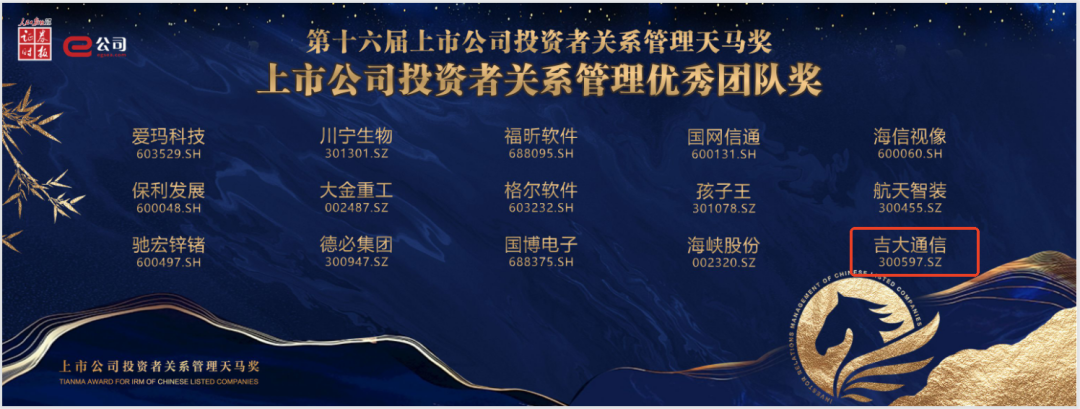 长期以来,吉大通信高度重视投资者关系管理工作,多措并举开展管理工作,积极搭建公司与投资者之间的沟通桥梁,以促进公司与投资者之间的有效沟通,提升公司价值传递成效。同时,公司坚持稳健的利润分配政策,积极回报股东。此次获奖,充分体现资本市场对吉大通信长期以来在规范治理、信息披露、投资者关系管理等多方面所取得优异表现的高度认可和肯定。