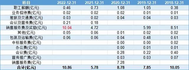 根据2022年年报显示,实现营业收入31.57亿元,同比下降了-13.55%,销售费用一栏却出现大幅增长,2022年销售费用10.86亿元,同比增长了87.87%。