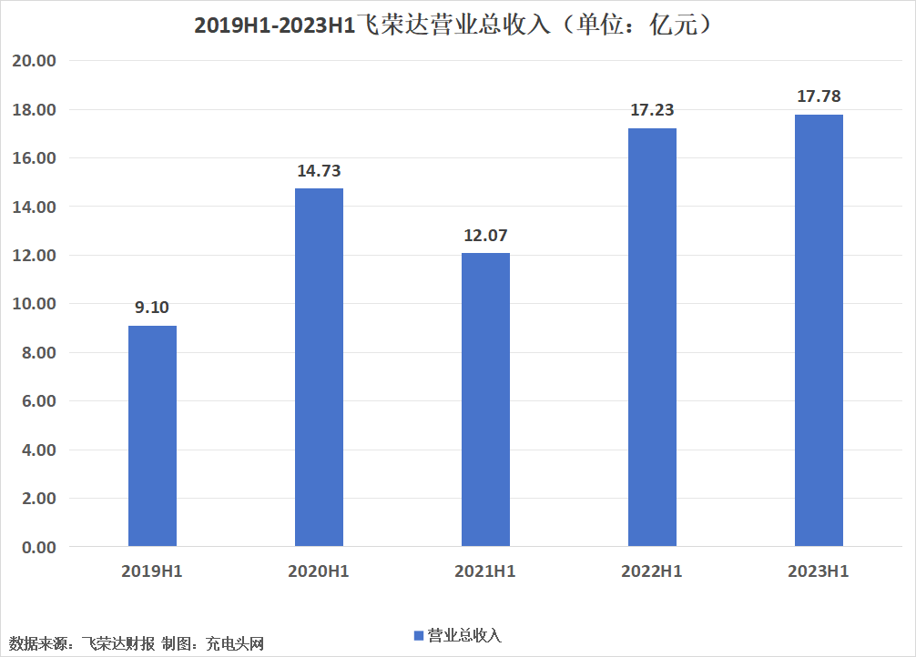2019-2023年上半年飞荣达分别实现营业总收入9.10亿元、14.73亿元、12.07亿元、17.23亿元、17.78亿元,同比变动分别为64.82%、61.87%、-18.03%、42.69%、3.20%。