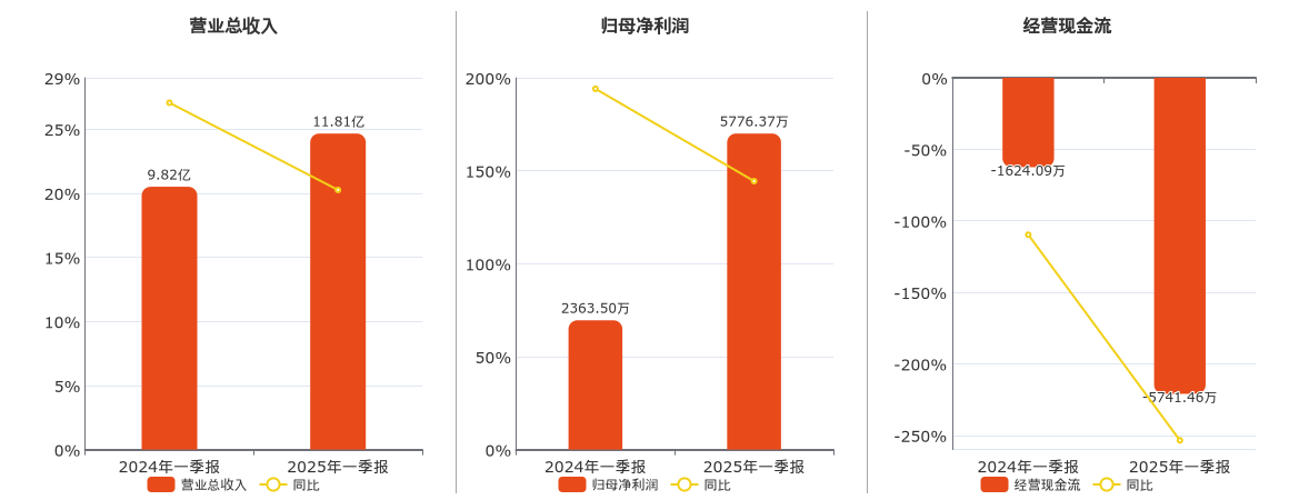 公司营业总收入为11.81亿元。归母净利润为5776.37万元。经营活动现金净流入为-5741.46万元,较去年同报告期经营活动现金净流入减少3939.10万元。