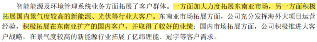 2021年上半年,拓斯达的智能能源业务营收增至6.36亿。公司解释为:拓展东南亚市场的同时,也在积极拓展国内大客户的需求,但并未披露具体数据。