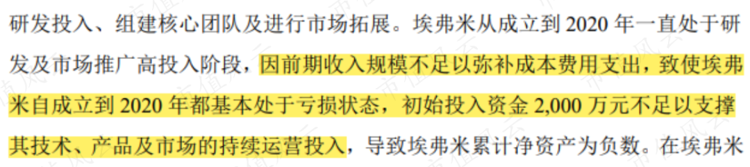 对此,拓斯达解释为:自2015年成立至2020年,埃弗米一直处于研发阶段,故长期处于亏损状态,初始投入资金2,000万不足以支撑后续投入,使得净资产为负。