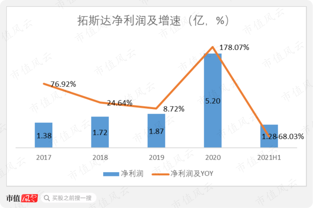 然而,2021年上半年拓斯达的净利润为1.28亿,同比下降68.03%,不到去年同期的一半。但是,相比2020年之前,这个业绩也还不错。
