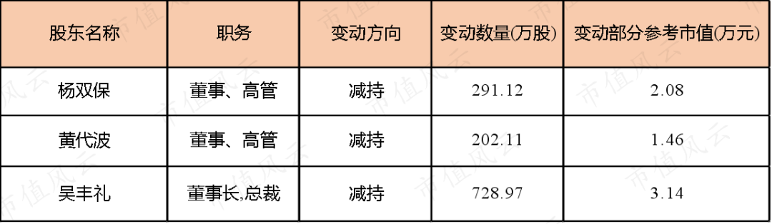 公司董事杨双保、黄代波分别减持套现2.08亿和1.46亿,主要集中在2020年5月至6月期间。