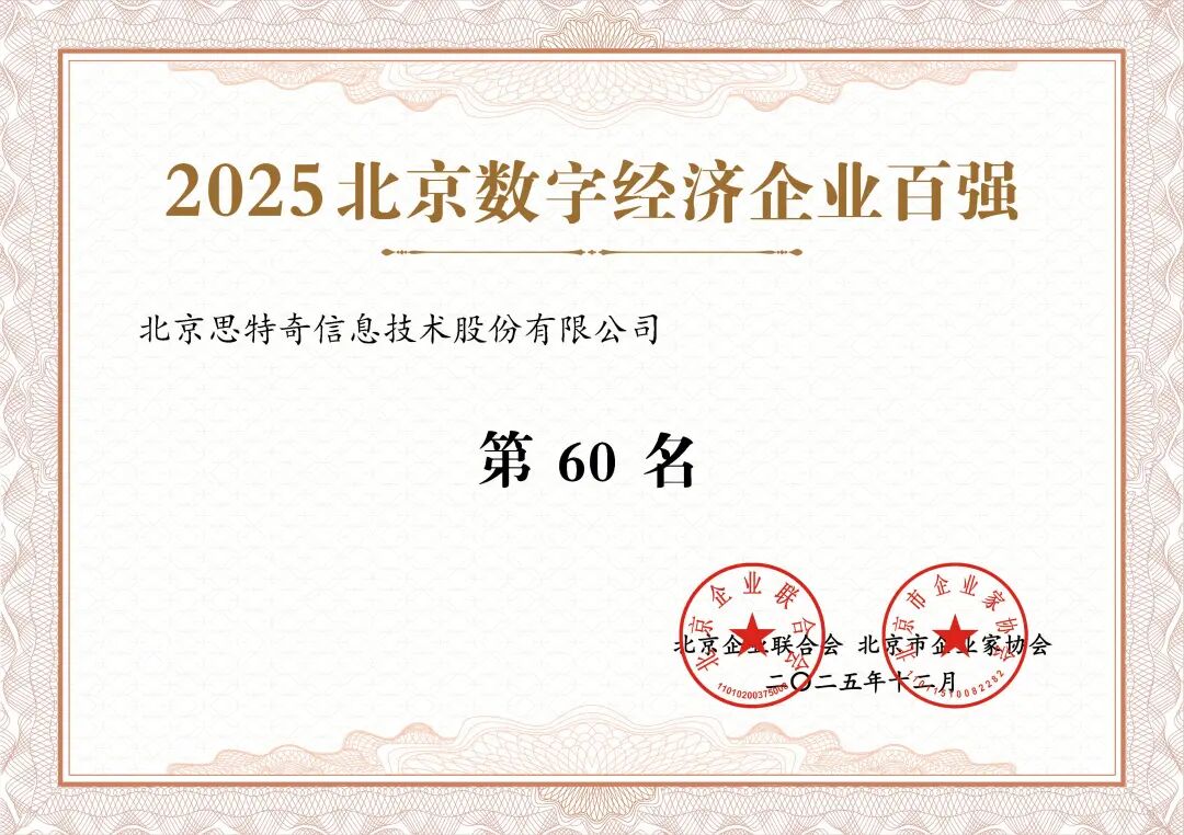 这一荣誉不仅是对思特奇多年来深耕数字化领域的高度认可,更是对公司作为数字经济主力军与科技创新践行者,积极服务国家战略、深耕主业、坚持创新驱动发展路径的充分肯定。