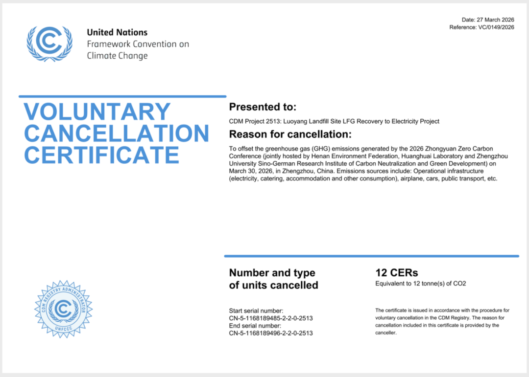 百川畅银作为重要参会企业,向大会捐赠12吨碳减排量,为会议实现碳中和提供有力支撑,成功助力本次大会打造出河南省首个经认证机构认证的“零碳会议”。