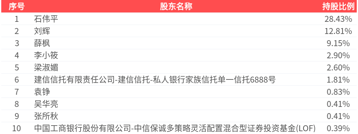 公司股东户数为1.71万户,前十大股东持股数量为1.16亿股,占总股本比例为59.75%,前十大股东持股情况如下: