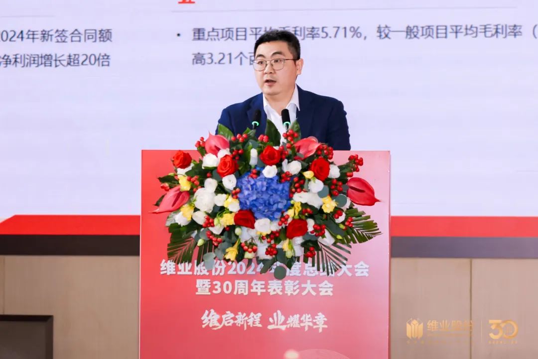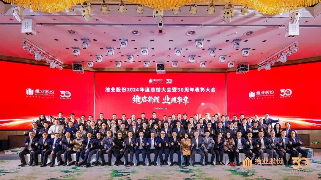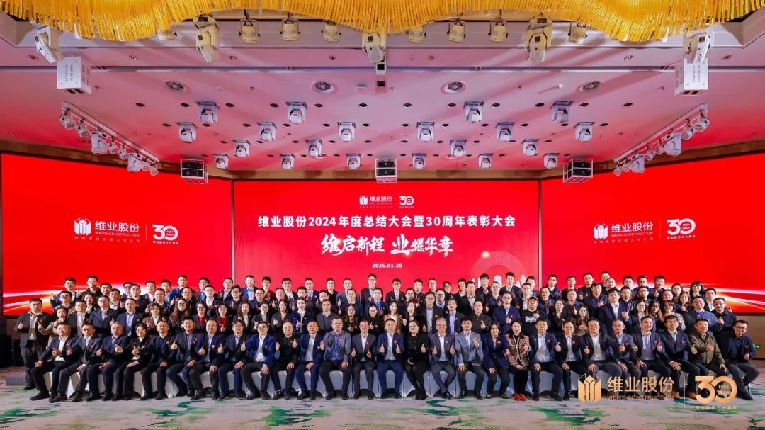 芳华三十载,同心创未来。刚刚过去的2024年,是维业股份成立30周年的里程碑之年,面对严峻的外部形势和艰难的市场环境,全体维业人团结一心、迎难而上、开拓创新,全面完成年度经营目标,推动企业延着高质量发展的道路持续前进,以优异的成绩为维业股份30华诞献礼。