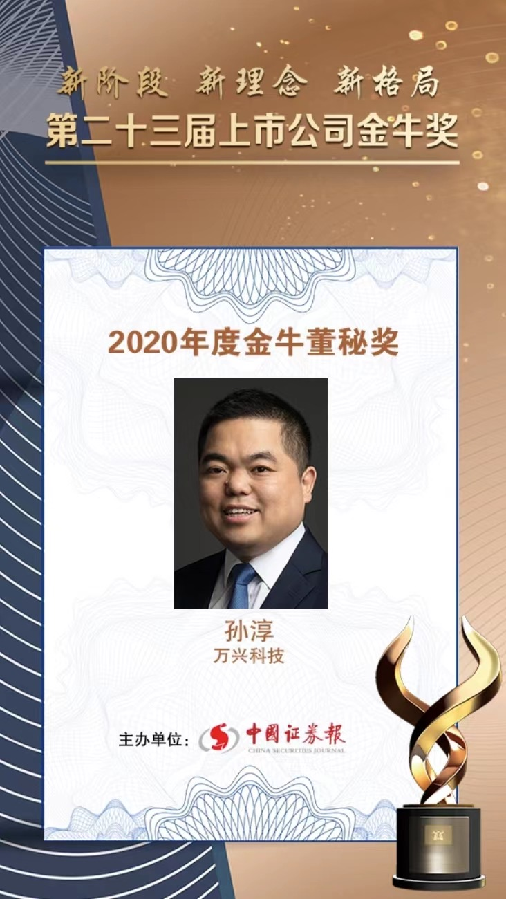 中证网讯(记者康曦)12月20日,中国证券报第二十三届(2020年度)上市公司金牛奖名单新鲜出炉。凭借良好的品牌形象和高水平的投关管理,万兴科技荣获“2020年度投资者关系管理奖”。同时,万兴科技董秘孙淳再度斩获“2020年度金牛董秘奖”。