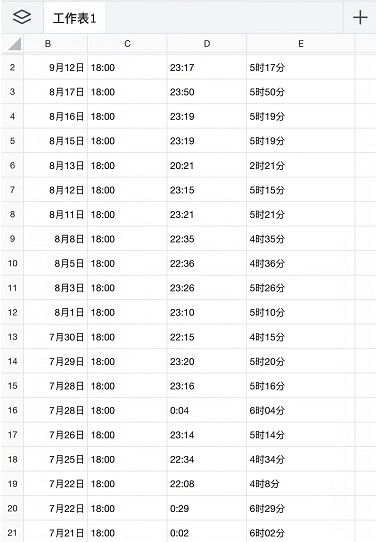达文西提供的部分加班记录图片来源:受访者供图