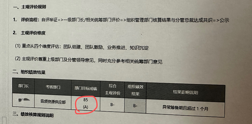不过记者从达文西提供的一份组织绩效结果公示来看,他在2022年第三季度的组织绩效结果为B-。