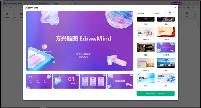 绘图创意应用万兴脑图(原亿图脑图)创新重塑知识可视化流程。全球首发“文生脑图”技术,将创意可视化耗时从小时级压缩至分钟级;新上线的PPT智能生成工具,通过多模态内容理解引擎,实现从思维导图到演示文稿的无缝转化,一键生成逻辑自洽、视觉统一的演示方案,重构教育等行业创作效率边界。