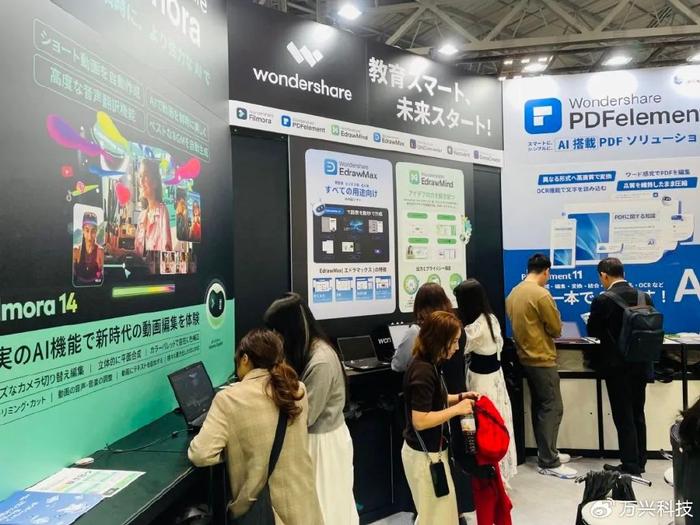 AIGC 软件 A 股上市公司万兴科技(300624.SZ)携旗下多款明星产品及创新解决方案亮相展会,助力日本教育行业的数字化转型。