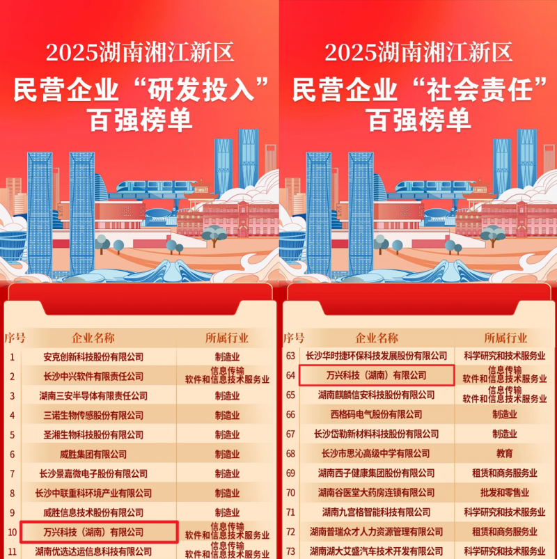 (万兴科技登上 2025 湘江新区民营企业「研发投入」与「社会责任」百强榜单)
