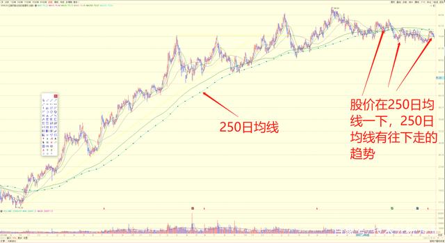 再看一下亿联网络整体走势。现在亿联网络的股价已经在250日均线以下了, 250日均线也有往下走的趋势,后面股价要是继续下跌的话,肯定要进入下跌趋势了。而且亿联网络也涨了4年了,也到了该回调下跌的时候了,大家还是少碰吧。
