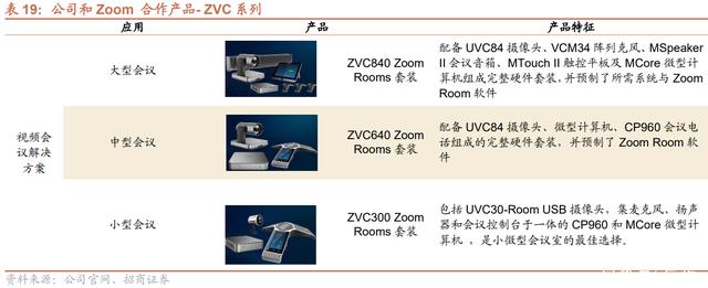与 Microsoft 类似,Zoom 同样专注平台软件开发以及需要和硬件供应商合作打造生态。不同之处是,相比 Teams, Zoom 通过聚焦中小企业和特色背景进行差异化竞争,截止 2020 年 4 月,据统计 Zoom 是使用度最高的线上视频会议软件,每日参会人数可达 3 亿人次。 Yealink2019 年切入 Zoom 合作,2020 年认证成为 HaaS 服务供应商,目前 Zoom 侧收入体量较小,未来伴随着 Zoom 对中小型企业会议室渗透率的提升,ZVC 系列产品收入有较大提升空间。