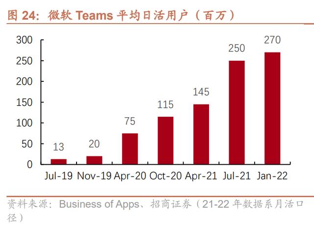 疫情爆发后全球居家办公的需求迅速上升,因疫情催化带来的刺激,视频会议的需求提前爆发增长,且增速愈发大,推动整个视频会议行业的发展,云视频会议厂商核心受益。疫情期间,云视频会议平台抓住机遇,以免付费迅速积累客户,加速中小企业用户基础建立。微软 Teams 在中国市场面向企事业单位提供为期 6 个月的全球版免费服务;Zoom 疫情期间免费提供不限时长版本;腾讯会议疫情期间免费支持 300 人不限时会议。从用户数来看,微软 Teams 21 年月平均日活用户达到 2.5 亿人次;腾讯会议于 2019 年 12 月 25 日上线,上线 245 天后用户数突破一亿,成为最快超过 1 亿用户的视频会议用品。