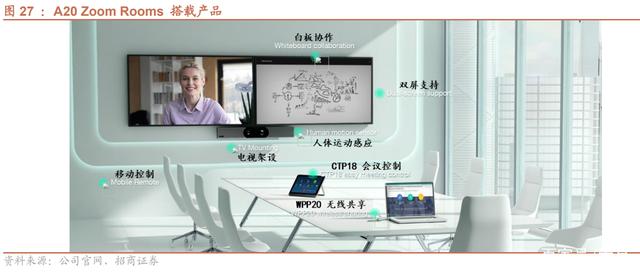 公司与微软、腾讯、Zoom 等云巨头加紧合作,硬件产品有望搭载主流云视频会议供应商打开长期快速增长态势。目前公司海外视频会议产品的主要收入都来自于 Teams,未来伴随着 Teams、Zoom 搭载硬件终端的解决方案在线下会议室渗透率的持续提升,公司视频会议产品的收入规模将迎来较大发展空间。