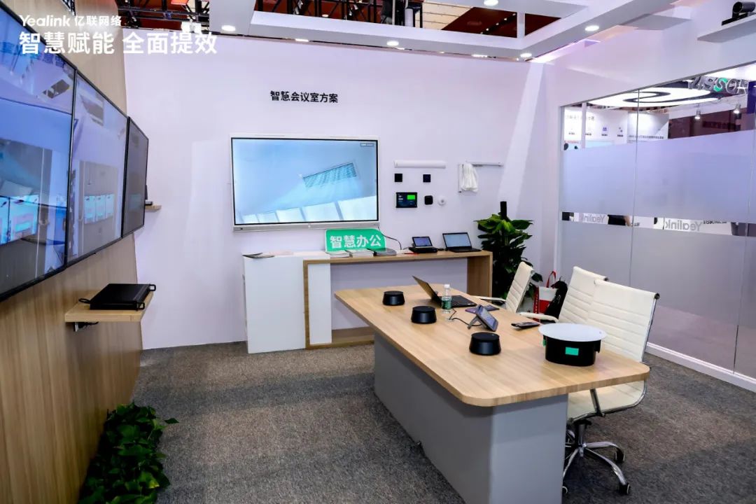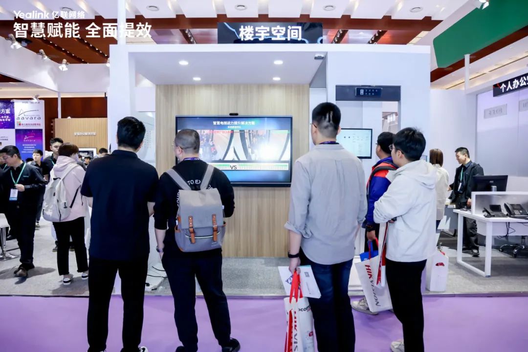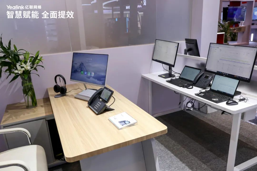 在展会中,亿联精心构建了公共楼宇、会议室、个人办公三大办公场景,并展出智慧电梯、会议平台、会议系统、智能摄像头、终端一体机等系列产品,全方位呈现国产智慧办公全场景解决方案,助力企业实现智能高效办公,全面提升工作效率。