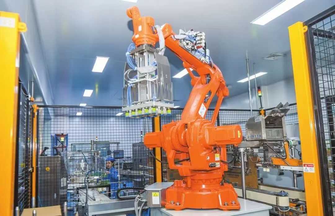 图片说明:普利制药车间,机械手臂旋转不停,一派繁忙景象。海口日报记者康登淋摄