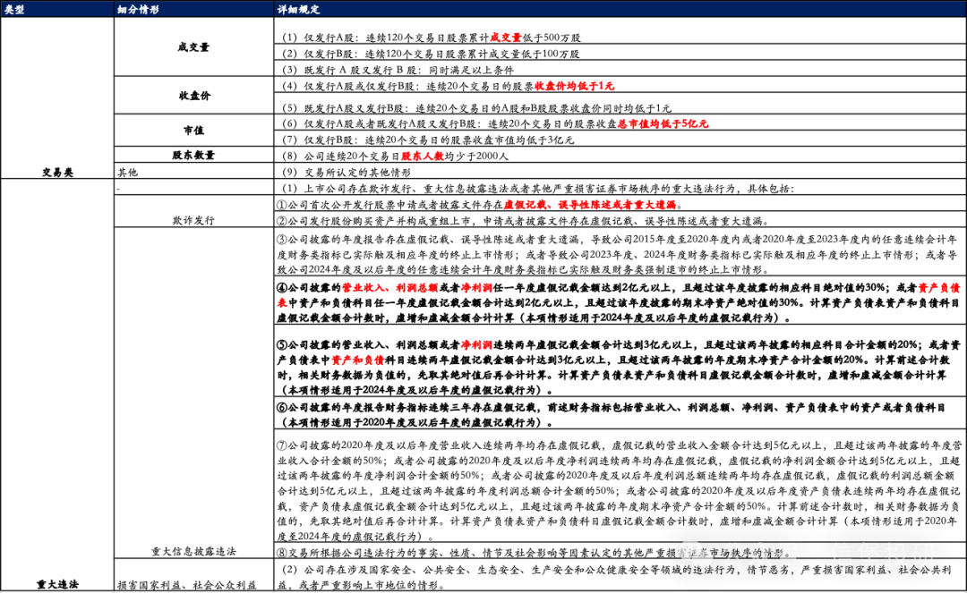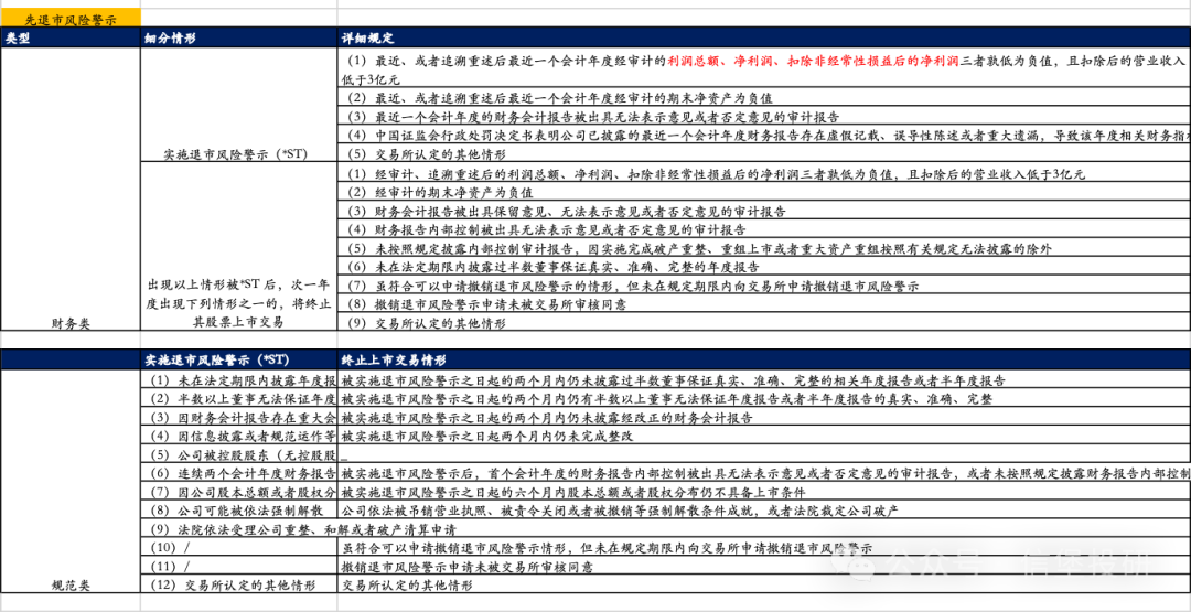 根据2024年发布的《关于严格执行退市制度的意见》,收紧了退市标准,如财务造假退市:调整为1年造假2亿元以上且超过30%;2年造假3亿元且超过20%;连续3年及以上造假,无论金额多少,退市;业绩不达标退市:营收低于3亿,先ST,第二年还低于3亿,退市……具体标准如下,按此标准进行筛查。
