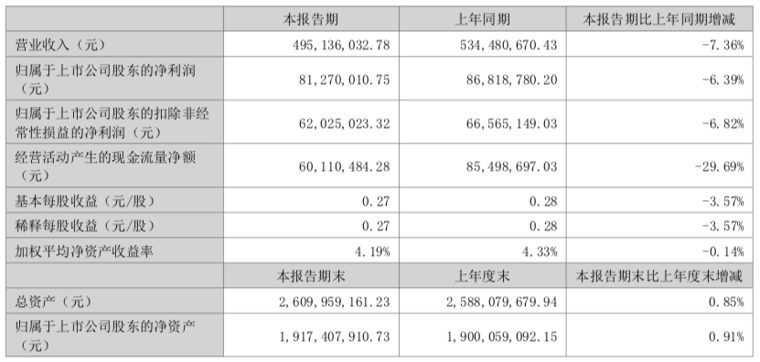 8月28日,光莆股份发布2023年半年度业绩报告称,上半年公司实现营业收入为4.95亿元,同比下降7.36%;归属于母公司股东的净利润为8,127万元,同比下降6.39%;扣非后净利润为6,202.5万元,同比下降6.82%;基本每股收益为0.27元,同比下降3.57%。光莆股份同时披露,第一季度营业收入2.28亿元,第二季度营业收入2.67亿元,环比上涨17.36%。