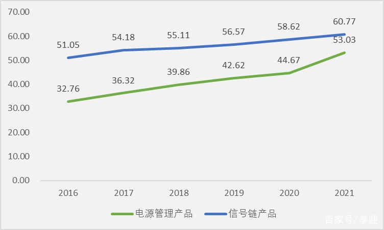 公司作为国内模拟厂商龙头,主要受益于汽车、工业智能化等带来的市场需求的爆发,公司产品品类扩充,在销产品扩充了400 多种,同时由于产能紧缺,模拟芯片也有部分涨价,综合导致产品营收出现大幅增长。同时未来2-3 年汽车智能化浪潮带来的对电源管理芯片的需求将持续增加,叠加国产化的进程加快以及公司在电源管理芯片的品类逐步扩充,公司该项业务有望持续保持高成长。