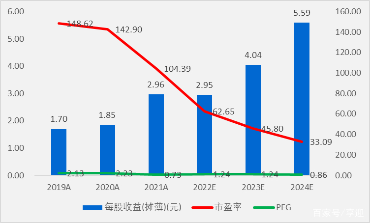 根据机构一致性预测,圣邦股份2024年业绩增速在38.39%左右,EPS为5.59元,19-24年5年复合增长率62.44%。目前股价185.00元,对应2024年估值是PE 33.09倍左右,PEG 0.86左右。