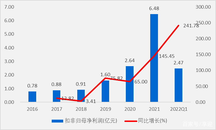 2021年公司实现营收同比增长86.97%至22.38亿元,5年复合增长率37.70%;实现归母净利润同比增长141.87%至6.99亿元,5年复合增长率53.89%;实现扣非归母净利润同比增长145.45%至6.48亿元,5年复合增长率52.72%;实现经营活动现金流同比增长135.49%至7.63亿元,5年复合增长率57.79%。