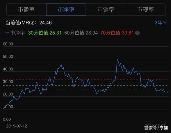 PE-TTM 74.52,位于近3年低位;PB 24.46,位于近3年低位,低PE低PB组合(相对)。