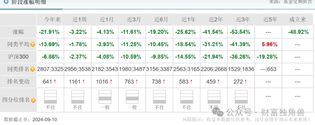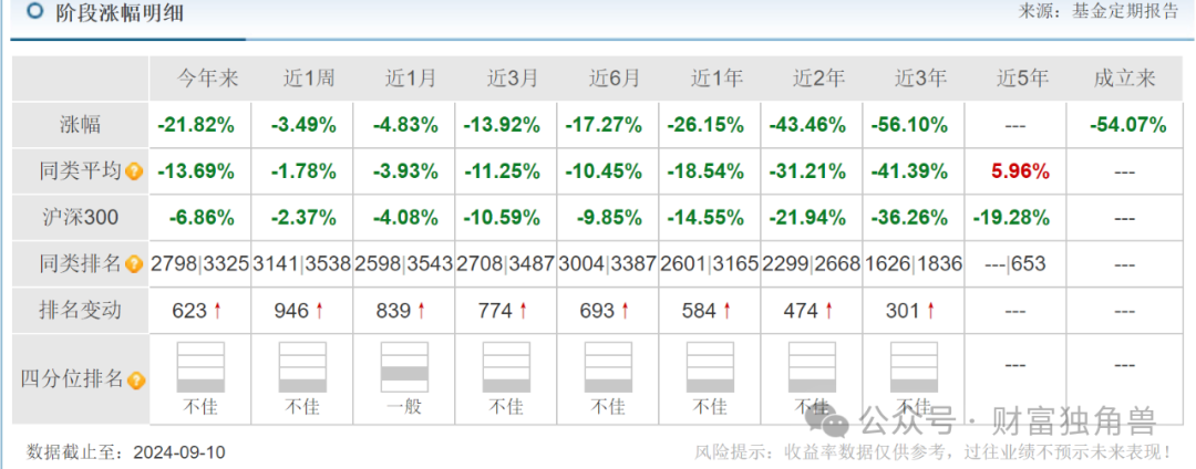 笔者还发现,该基金在2023年1季度持有166.29万股的宁夏建材,2023年2季度持有161.73万股,2023年3季度持有161.73万股,2023年4季度持有161.73万股。2024年1季度持有156.98万股,2024年2季度持有33.37万股。然而,笔者发现,在2023年1月3日-2024年9月10日股票价格下跌了23%。