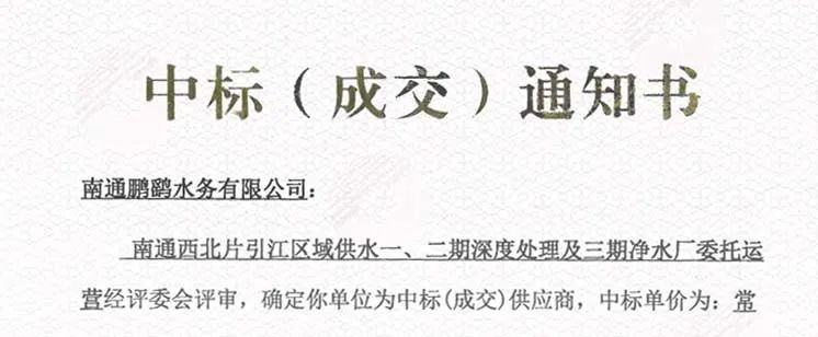 此次成功中标,无疑是如皋市政府对我司技术水平和管理能力的又一次肯定,是对公司多年来运营能力的信赖。公司将充分利用自身在水处理领域的专业优势及丰富经验,为当地居民提供更加安全、可靠的饮用水服务。