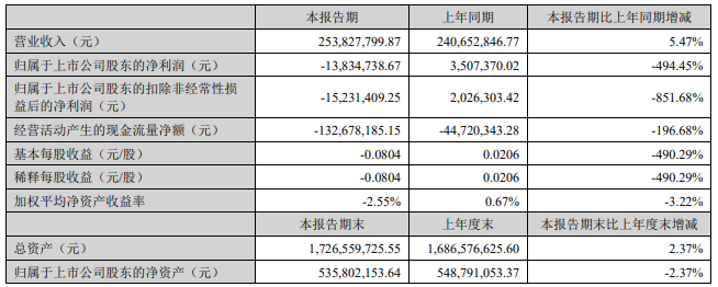 而在此前,飞鹿股份发布了2022年半年度报告。报告显示,上半年公司营业收入为2.54亿元,同比增长5.47%。归属于上市公司股东的净亏损为1383.47万元,由盈转亏。归属于上市公司股东的扣除非经常性损益的净亏损为1523.14万元。基本每股亏损为0.0804元。