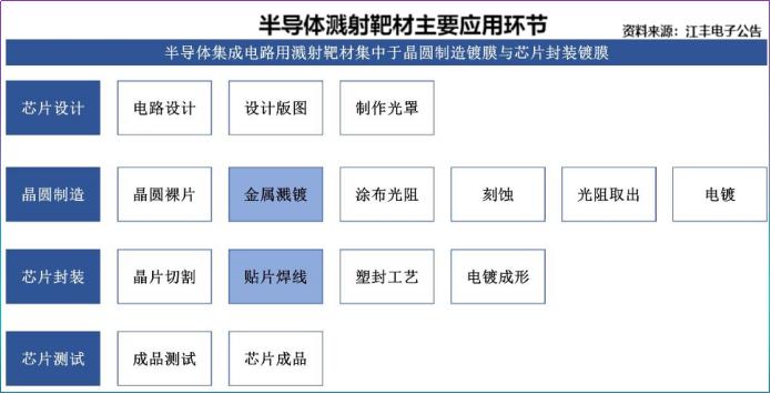 江丰电子主业聚焦于超高纯金属溅射靶材,主要应用于超大规模集成电路芯片、平板显示器的物理气相沉积(PVD)工艺,是制造存储芯片不可或缺的关键材料。