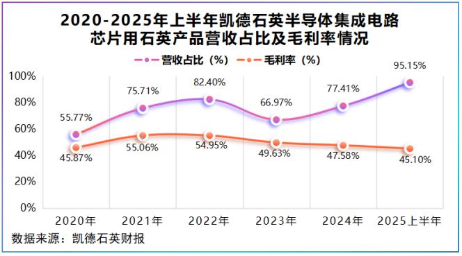 2025年上半年,凯德石英半导体集成电路芯片用石英产品营收占比达95.15%。