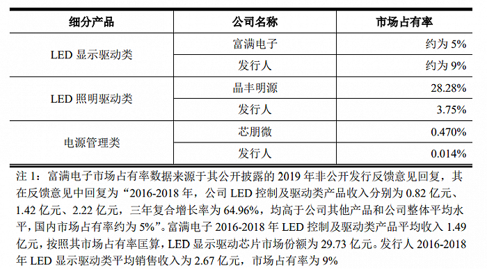 明微电子的招股说明书显示,明微电子和富满电子的市场占有率分别为9%和5%,但这个数据只能代表2018年的信息。