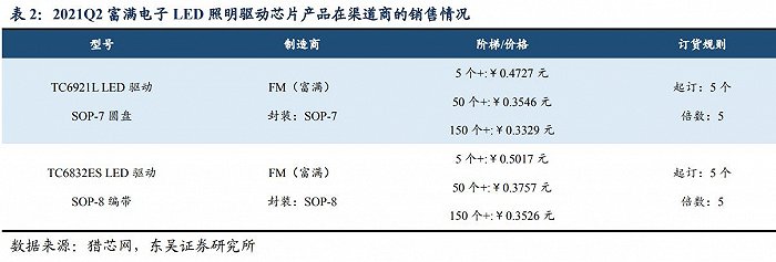 而在价格方面,富满电子的涨价趋势仍在延续。东吴证券7月9日发布的研报显示,在猎芯网,富满电子TC6921L和TC6832ES两款芯片5个起订价格分别为0.4727元和0.5017元。