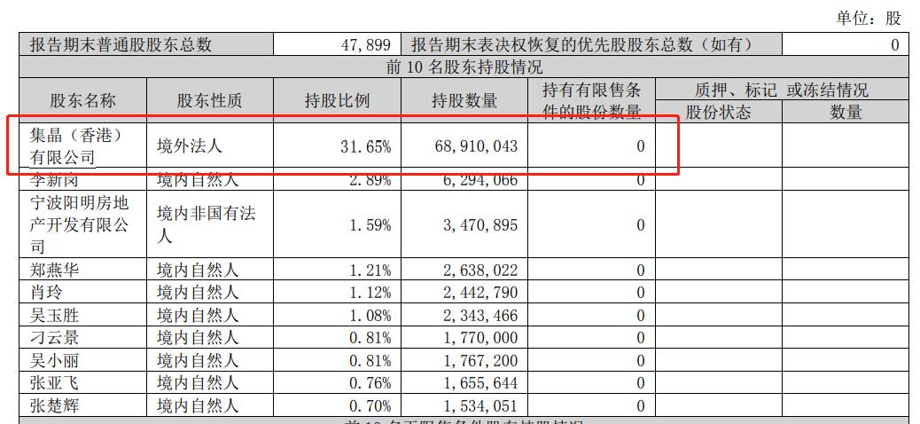 三季报显示,集晶(香港)有限公司持股比例达31.65%,为富满微第一大股东。