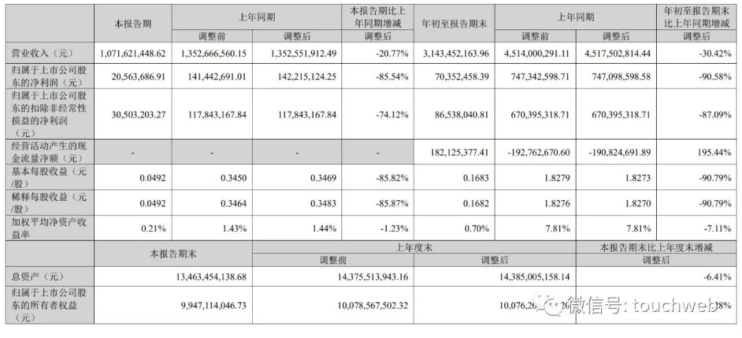 华大基因2023年前三季度净利为7035万元,较上年同期的7.47亿元下降90.58%;扣非后净利为8654万元,较上年同期的6.7亿元下降87%。