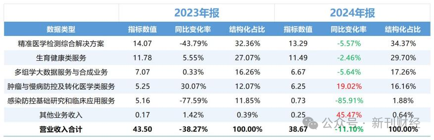 虽然整体营收下滑,但各个业务板块之间呈现结构性分化。体量最大的精准医学检测综合解决方案作为传统支柱,收入同比下降5.57%至13.29亿元;位居次席的生育健康类服务,收入同比下降2.46%至11.49亿元;第三位的多组学大数据服务与合成业务,2024年收入6.67亿元,也下降5.64%,而在本次论坛上发布的“i99智健”正属于该板块,被公司寄予厚望,期待其正式上线后,未来能为营收带来质的提升;其他诸如肿瘤与慢病及其他业务的收入等虽有增长,但结构化占比有限,尚无法支撑整体营收水平。
