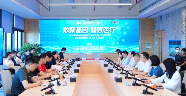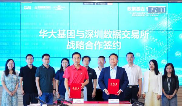 签约仪式出席领导包括深圳数据交易所副总经理赵阳、深圳市政务服务和数据管理局数据制度建设处二级调研员代旻、盐田区政务服务和数据管理局局长杨斌、广东省数据要素产业协会秘书长陈希、华大基因CEO赵立见、华大集团党委书记/华大基因COO杜玉涛、华大基因数据资产管理委员会主任许四虎、华大基因副总经理/财经负责人王玉珏、华大基因副总经理/智惠医学研究院执行院长朱师达、华大基因副总经理/产品中心负责人杨昀、华大基因IT部负责人彭娣蓉。
