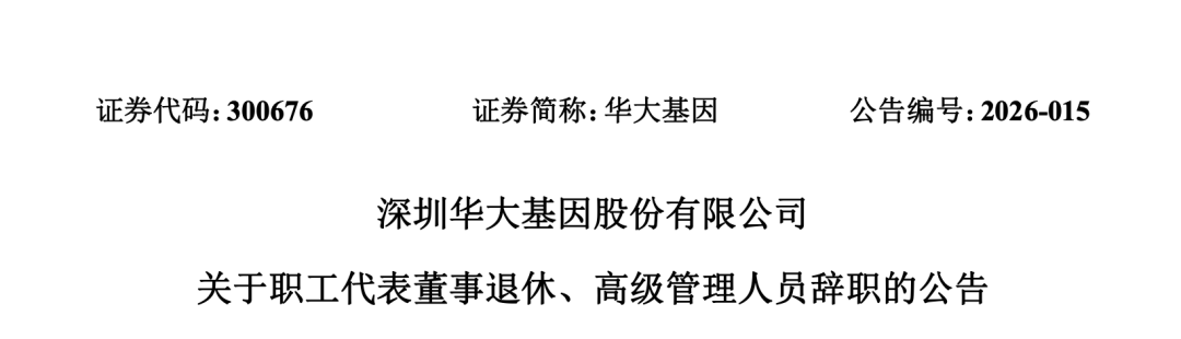 近日,华大基因发布公告,公司副总经理杨昀女士和李浩先生因个人原因申请辞去副总经理职务,辞职后将不再在公司及其控股子公司担任任何职务。根据公告披露,杨昀和李浩原定任期均至2027年6月17日。