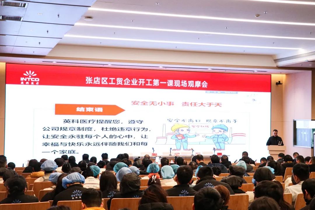 新春开工,安全先行。2月5日大年初八开工第一天,张店区工贸企业“开工第一课”现场观摩会暨英科医疗“开工第一课”活动在英科医疗智能医疗器械研发营销科技园B2办公楼报告厅隆重举行。此次活动旨在深入贯彻落实各级政府关于安全生产的工作部署,强化企业安全生产主体责任,确保全体员工迅速从节日氛围中回归工作状态,为新一年的安全生产工作奠定坚实基础。