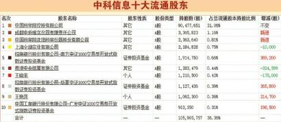 从中科信息2025年半年报前十大流通股东来看,南方中证1000交易型开放式指数证券投资基金在第二季度加仓36.92万股至191.47万股、华夏中证1000交易型开放式指数证券投资基金加仓26.58万股、广发中证1000交易型开放式指数证券投资基金加仓19.85万股。